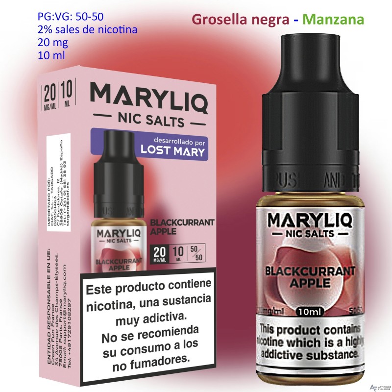 20 mg. Blackcurrant Apple MARYLIQ Sales de nicotina