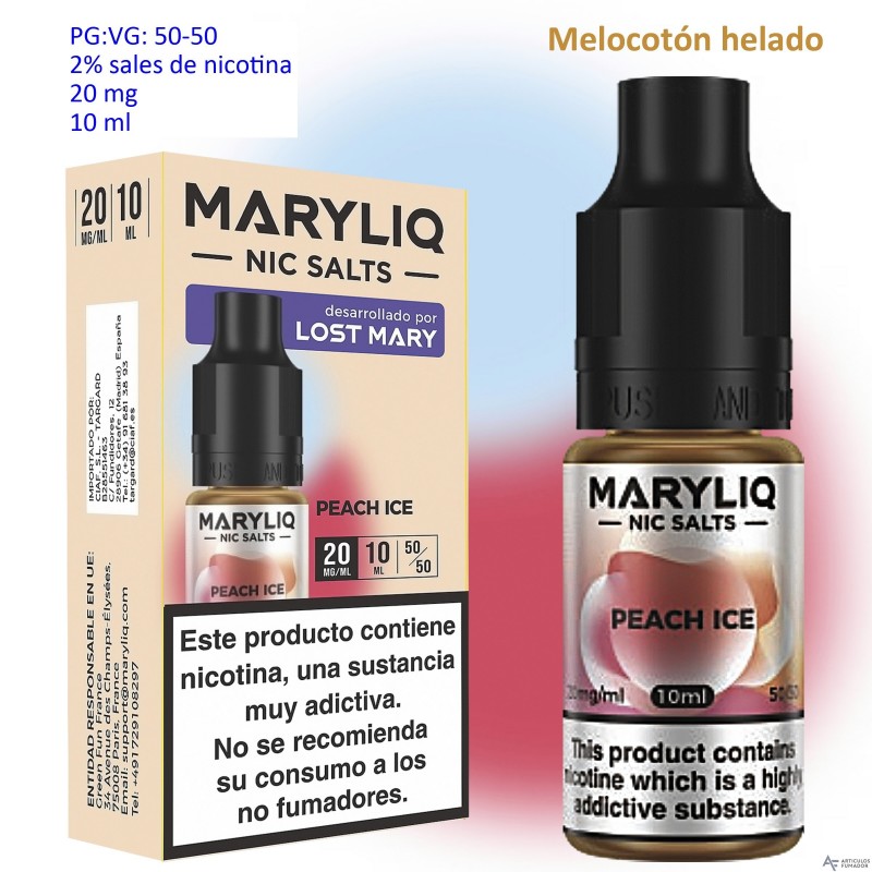 20 mg. Peach Ice MARYLIQ Sales de nicotina