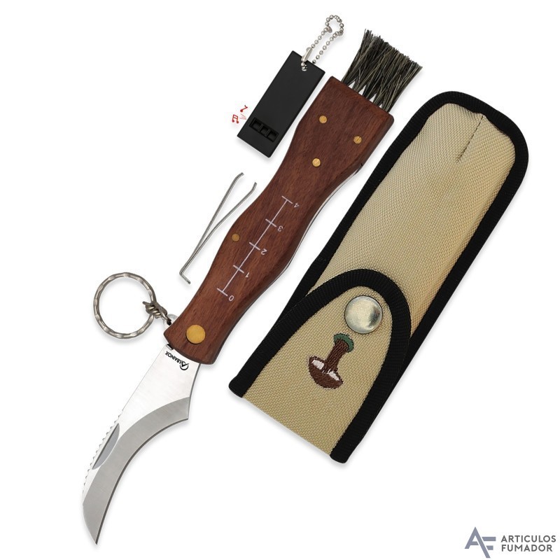 7,2 cm. Navaja Albainox SETAS mango madera con llavero y funda