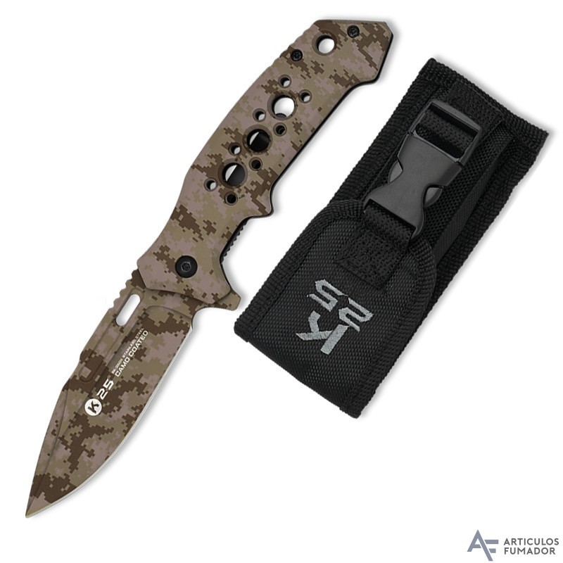 8,5 cm. Navaja táctica K25 con mango aluminio camo arena
