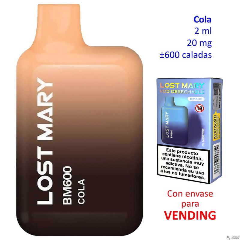 Cola 20 mg. Elfbar Lost Mary 600 VENDING Vaper desechable