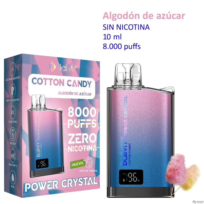 Cotton Candy 0 mg. BALMY POWER CRYSTAL Vaper desechable
