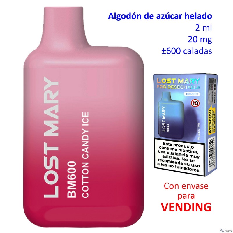 Cotton Candy Ice 20 mg. Elfbar Lost Mary 600 VENDING Vaper desechable
