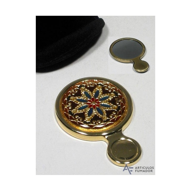 Espejo dorado redondo esmaltado Mini tocador con decoración floral