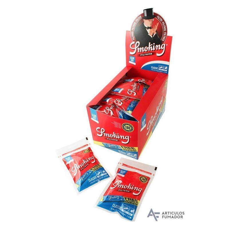 Exp. de filtros Smoking Slim de 6 mm. (30 bolsas x 180 filtros) + librito