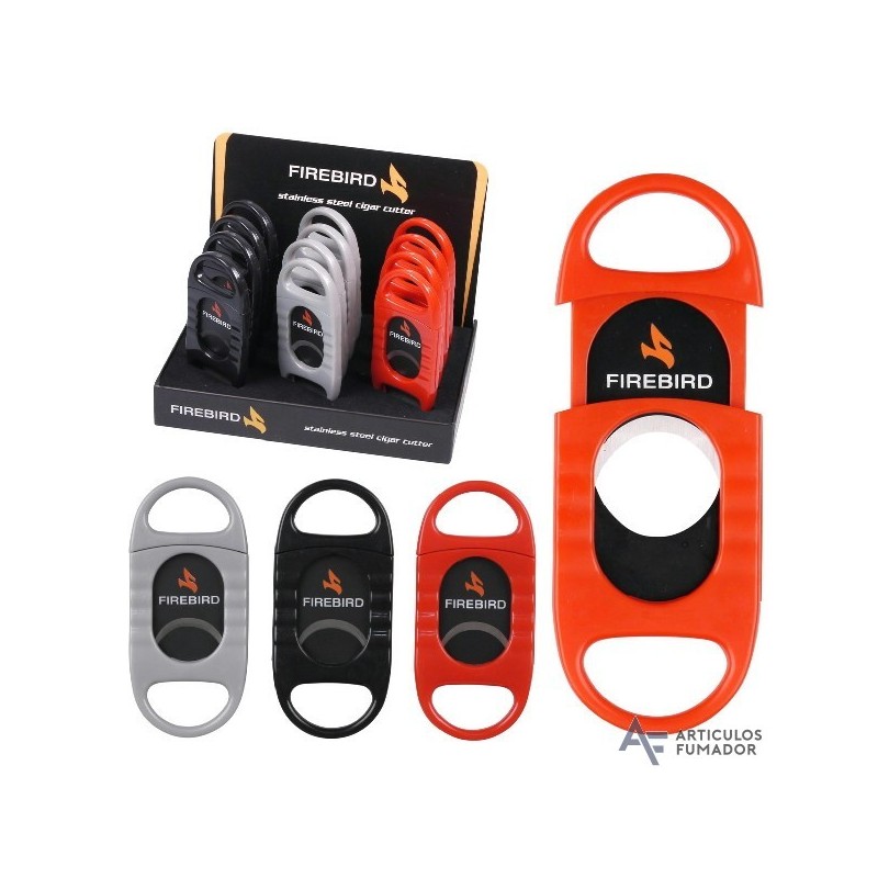 Expositor con 12 cortapuros de colores negro, plata y rojo