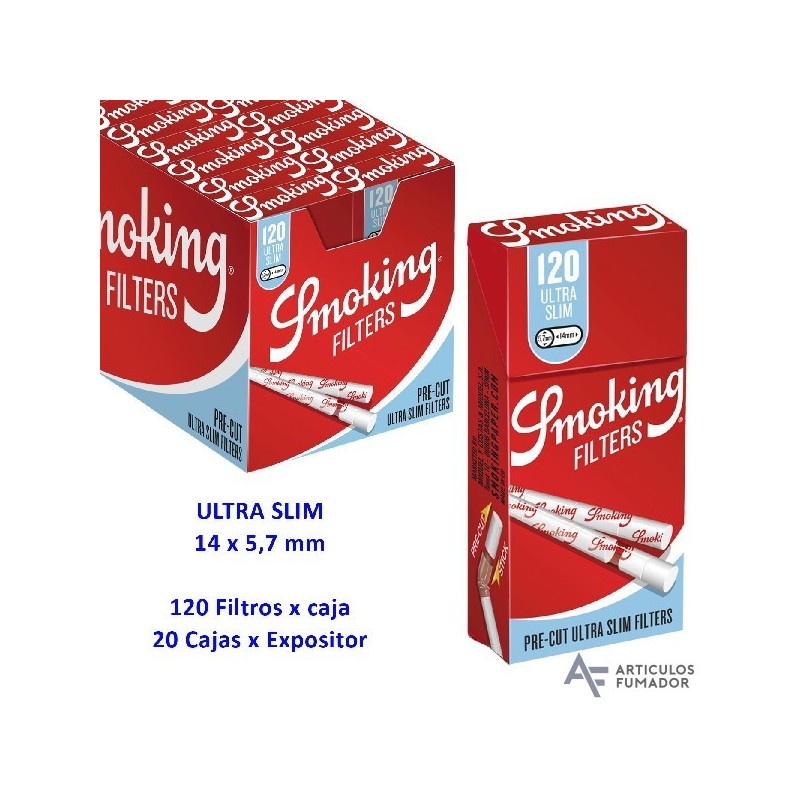 Expositor con 20 cajitas de 120 filtros pre-cut Smoking Ultra Slim de...