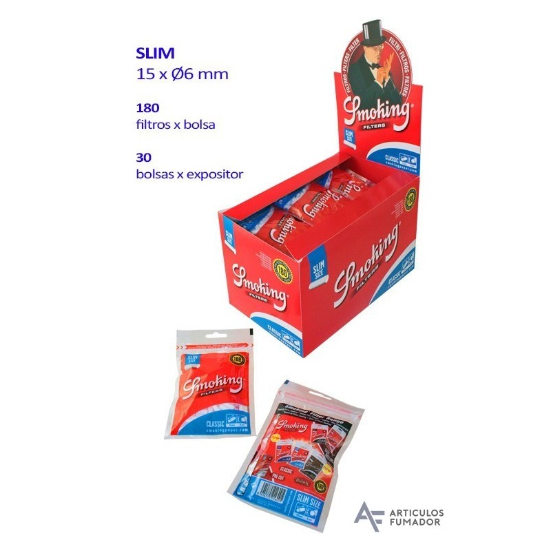 Expositor de filtros Smoking Slim de 6 mm. (30 bolsas x 180 filtros)