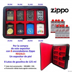 Expositor de piel Zippo con 8 encendedores surtidos + 8 latas de gasolina