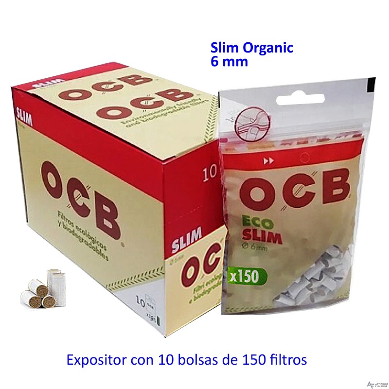 Filtros OCB Slim Orgánicos 6 mm Expositor con 10 bolsas de 150 filtros
