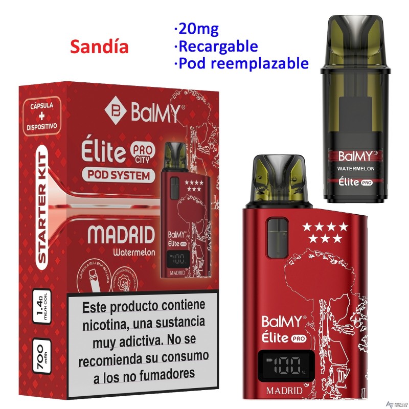 Kit MADRID EDITION Watermelon 20 mg. BALMY ÉLITE PRO recargable