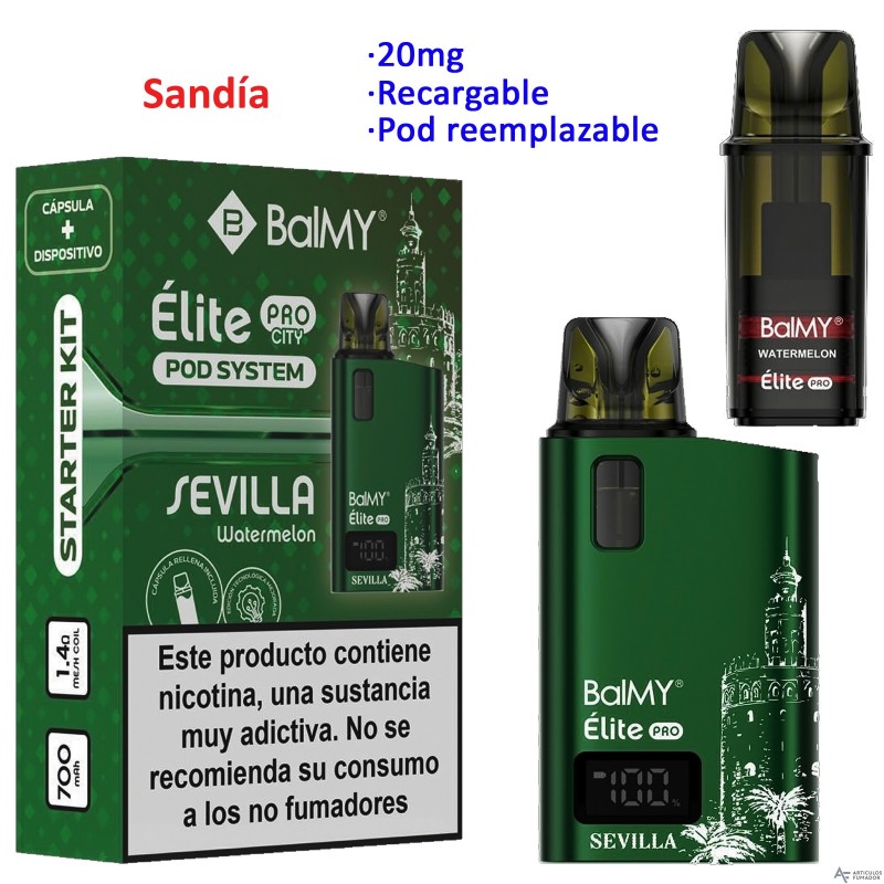Kit Watermelon 20 mg. BALMY ÉLITE PRO SEVILLA EDITION GREEN recargable