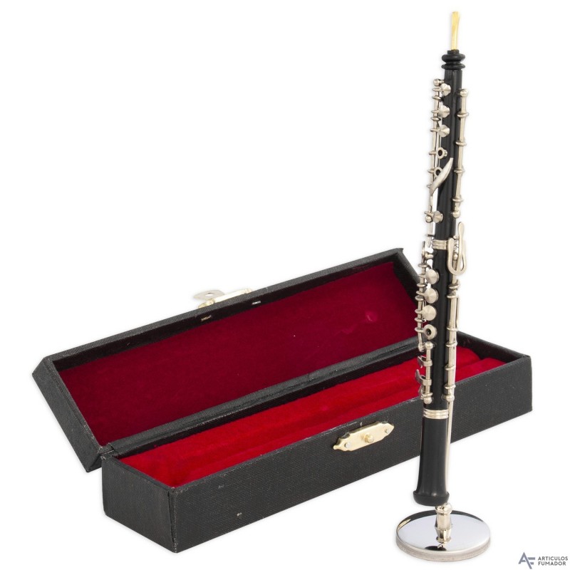 Oboe negro decorativo en miniatura. Con soporte metálico y estuche