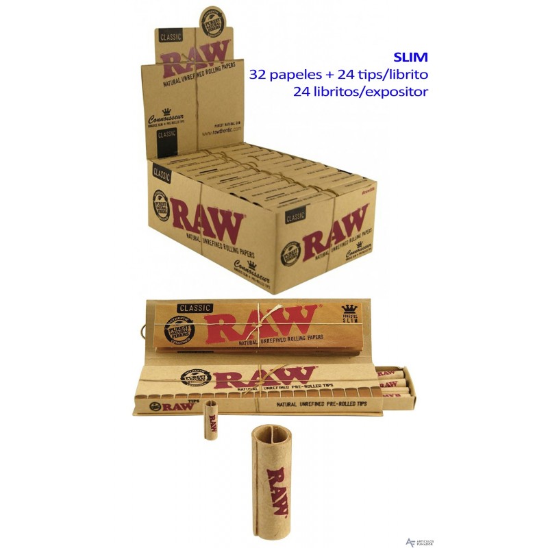 Raw Conoisseur KS Slim 24 libritos con 32 hojas + 32 tips preenrollados