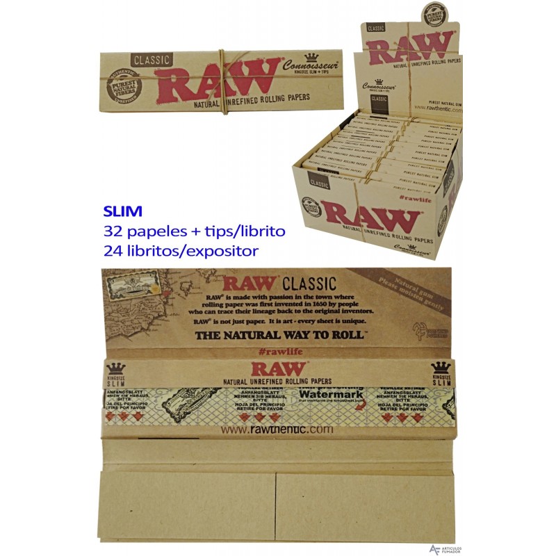 Raw Conoisseur KS Slim 24 libritos con 32 hojas + 32 tips