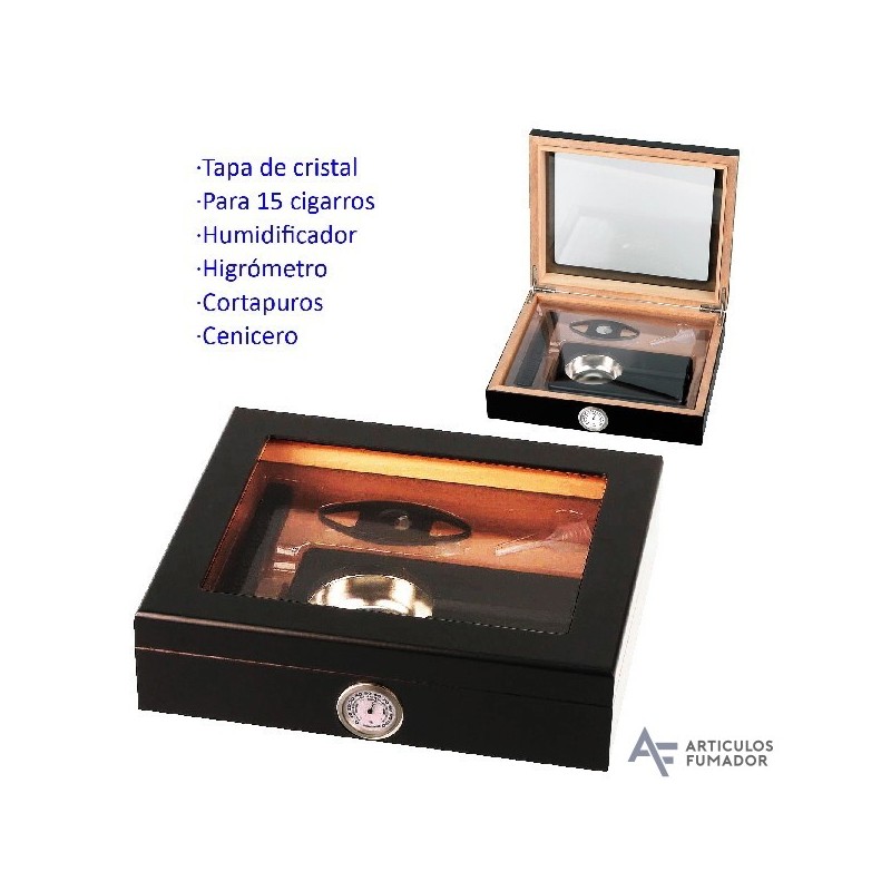 Set de regalo humidor negro con tapa de cristal para 15 cigarros con...