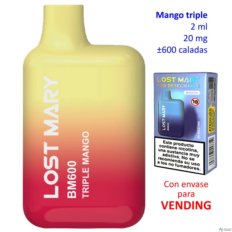 Triple Mango 20 mg. Elfbar Lost Mary 600 VENDING Vaper desechable