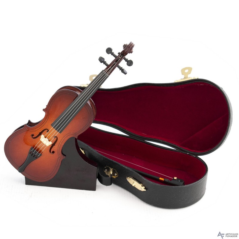 Violonchelo decorativo miniatura en madera. Con estuche y soporte